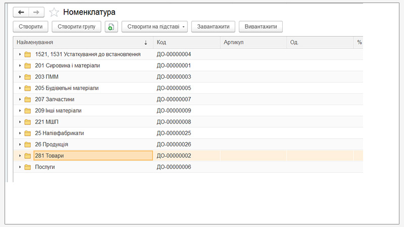 Заводимо під кожний вид номенклатури окрему групу у вигляді папки.