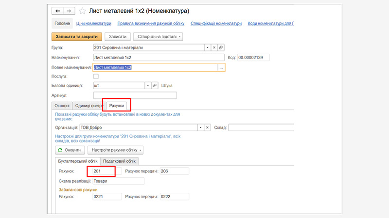 який бухгалтерський рахунок будуть відноситися операції з конкретним товаром, матеріалом чи послугою. Тобто, коли ми продаємо або купуємо товар, програма автоматично