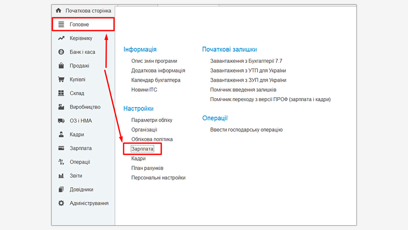 Перейдіть до меню: Головне — Зарплата — Настройка складу нарахувань і утримань