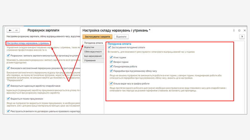 Щоб система коректно розраховувала оплату за перероблені години, необхідно попередньо налаштувати параметри обліку.