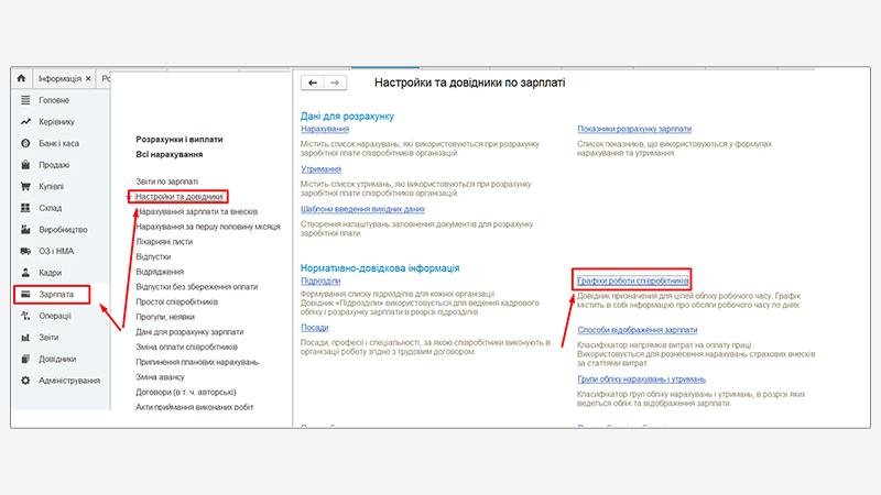 Меню: Зарплата — Настройки та довідники — Графіки роботи співробітників