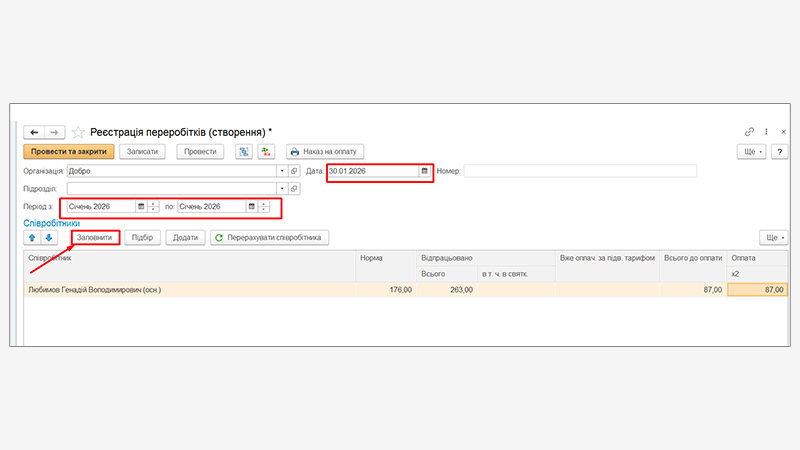 Після налаштування графіків і визначення норми часу необхідно зафіксувати фактично відпрацьовані понаднормові години. Саме ці дані будуть використані для подальшого розрахунку