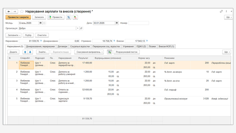 У BAS КОРП / BAS ЗУП цей процес можна налаштувати так, щоб система автоматично виконувала розрахунки та враховувала всі необхідні умови.