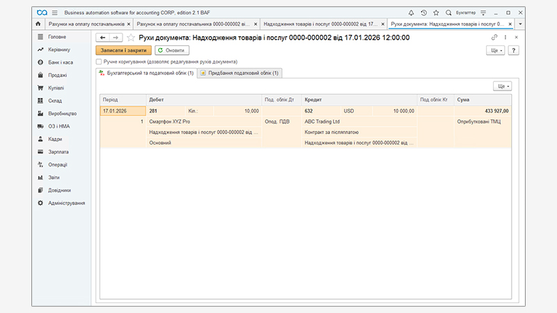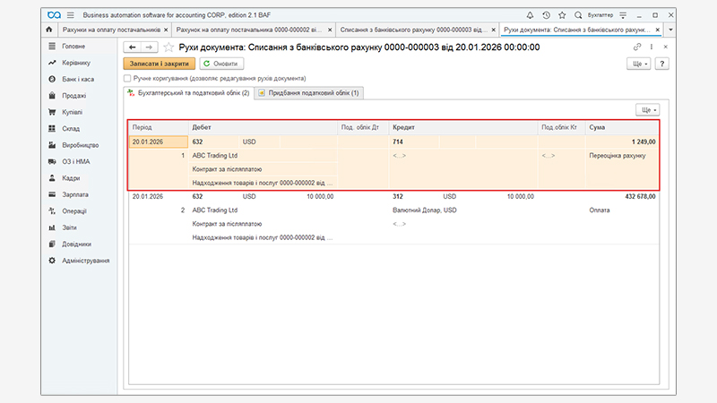 контролю бухгалтерських проводок. Якщо всі налаштування виконані коректно, програма автоматично виконує більшість розрахунків і допомагає уникнути помилок під час відображення