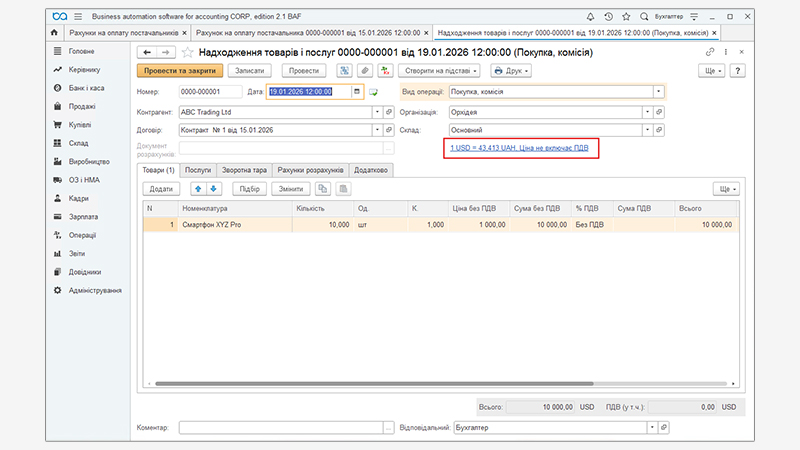 Головне — дотримуватись логіки роботи системи: правильно створювати контрагента і договір, контролювати валютні курси та перевіряти проводки після кожного етапу. Тоді облік