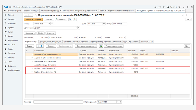 При нарахуванні заробітної плати нічого додатково робити не потрібно. Програма сама розраховує все пропорційно: і основну зарплату, і індексацію, і інші виплати. Головне, щоб на