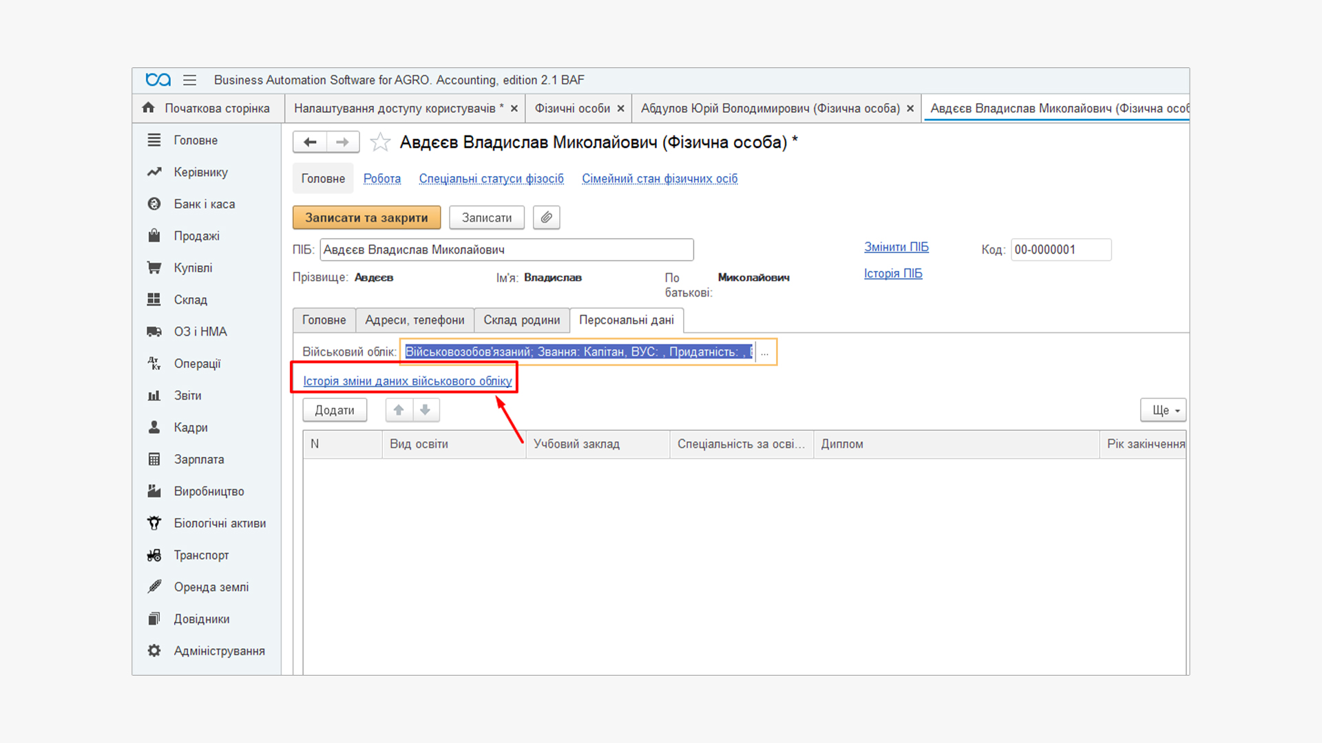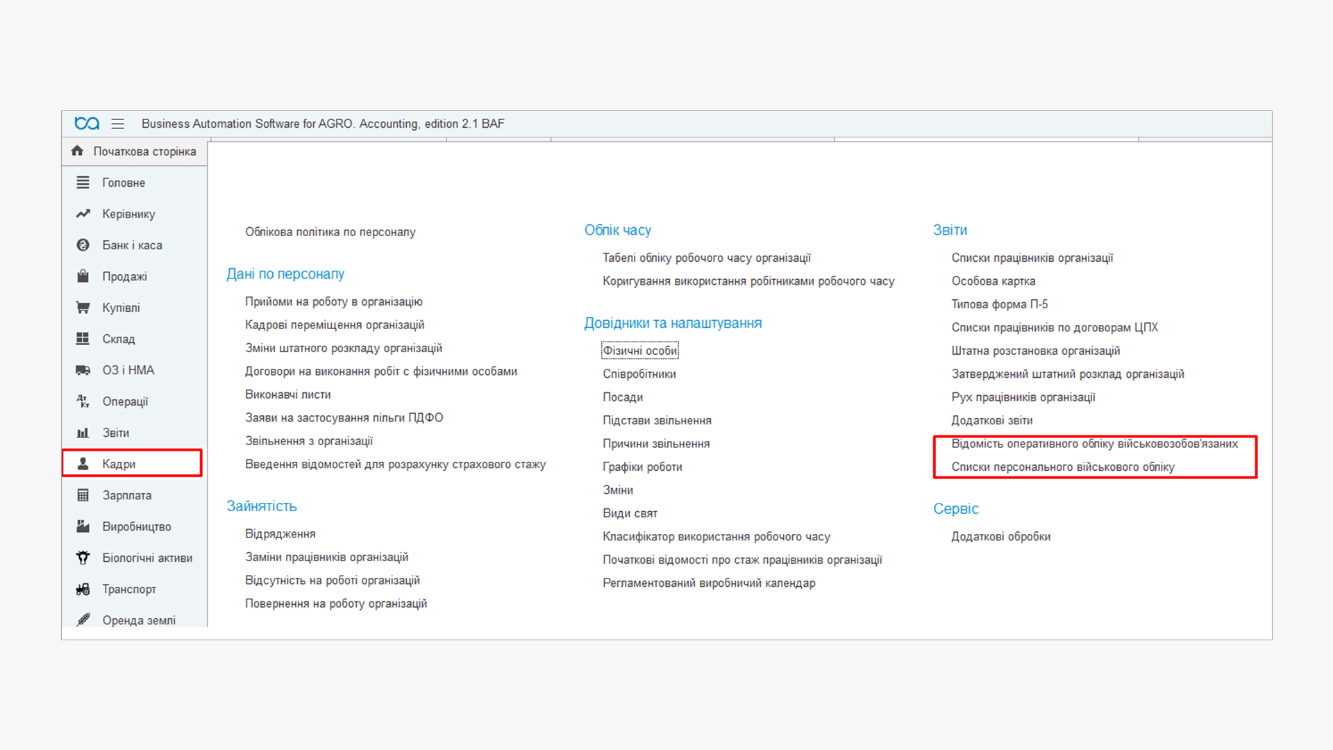 Ведення військового обліку в BAS АГРО стає простішим завдяки автоматизованим інструментам. Достатньо один раз заповнити регістр відомостей і надалі формування звітів займає