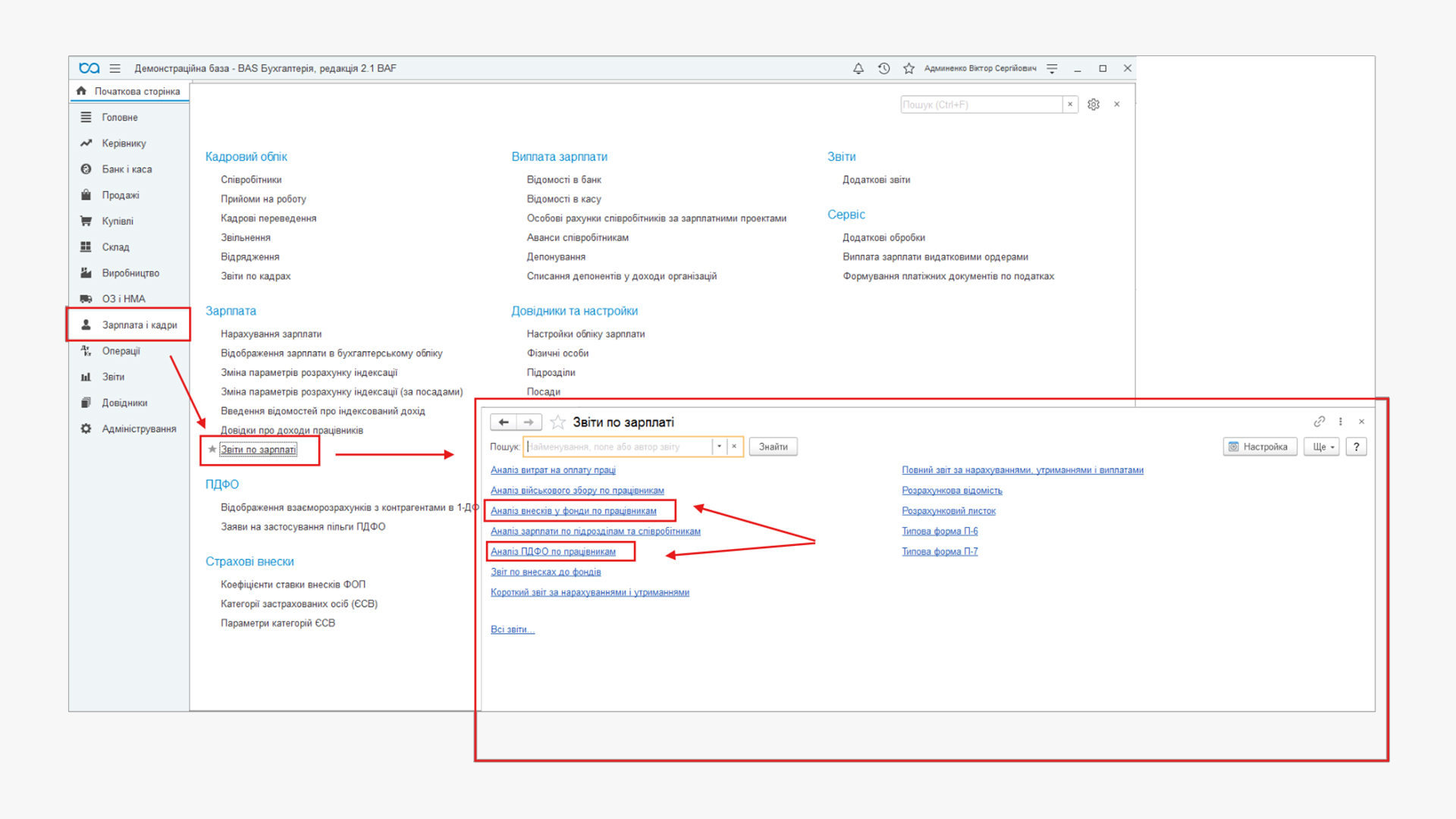 Для аналізу даних про суми нарахувань, утриманих податків і нарахованих внесків ЄСВ ФОП скористаємося стандартними звітами з заробітної плати, які передбачені у програмі.