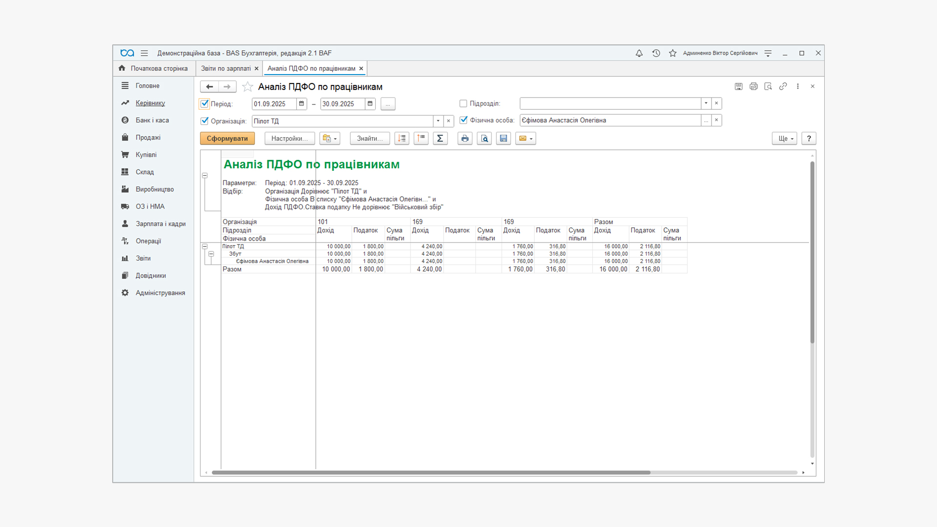 Так виглядає звіт «Аналіз ПДФО по працівникам».