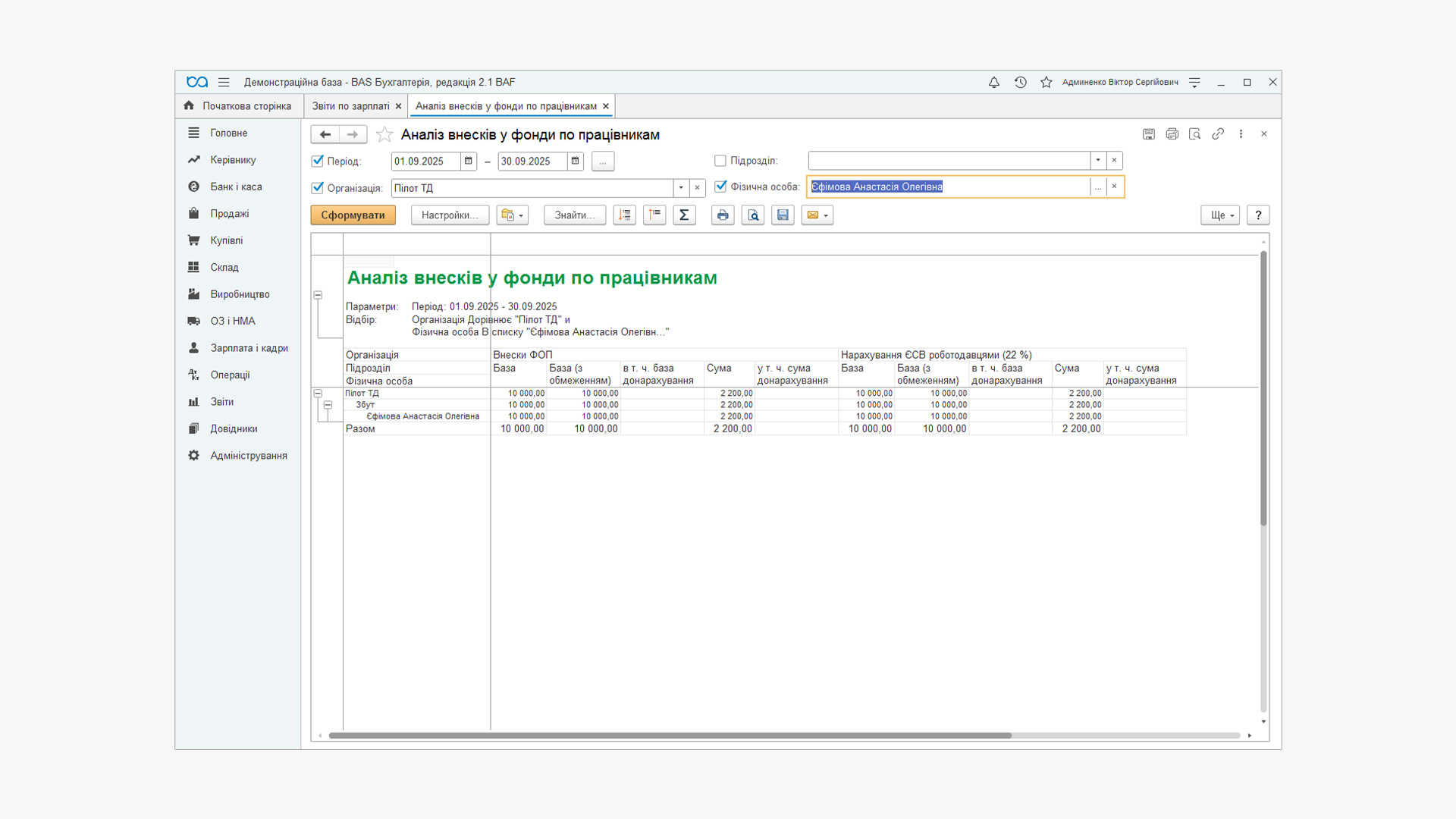 Так виглядає звіт «Аналіз внесків у фонди по працівникам».